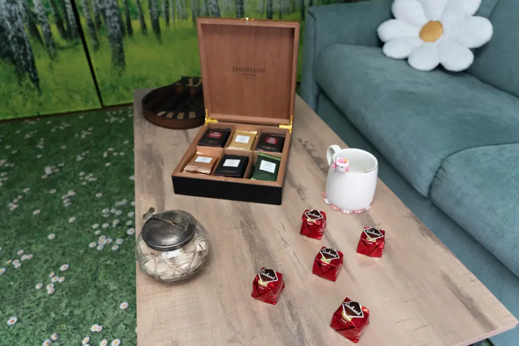Enfin, une fois le massage terminé, vous aurez l’opportunité de prendre le temps d’émerger tranquillement dans le petit salon attenant, conçu spécialement pour servir de sas entre le massage et le monde extérieur. Vous pourrez si vous le désirez y prendre un thé et une petite collation, avant de repartir.